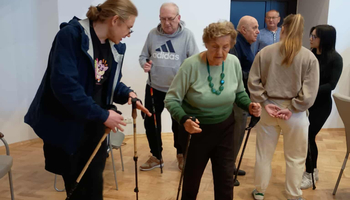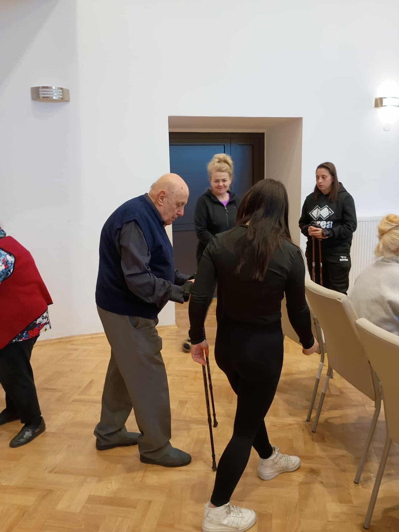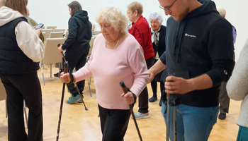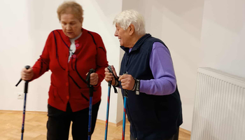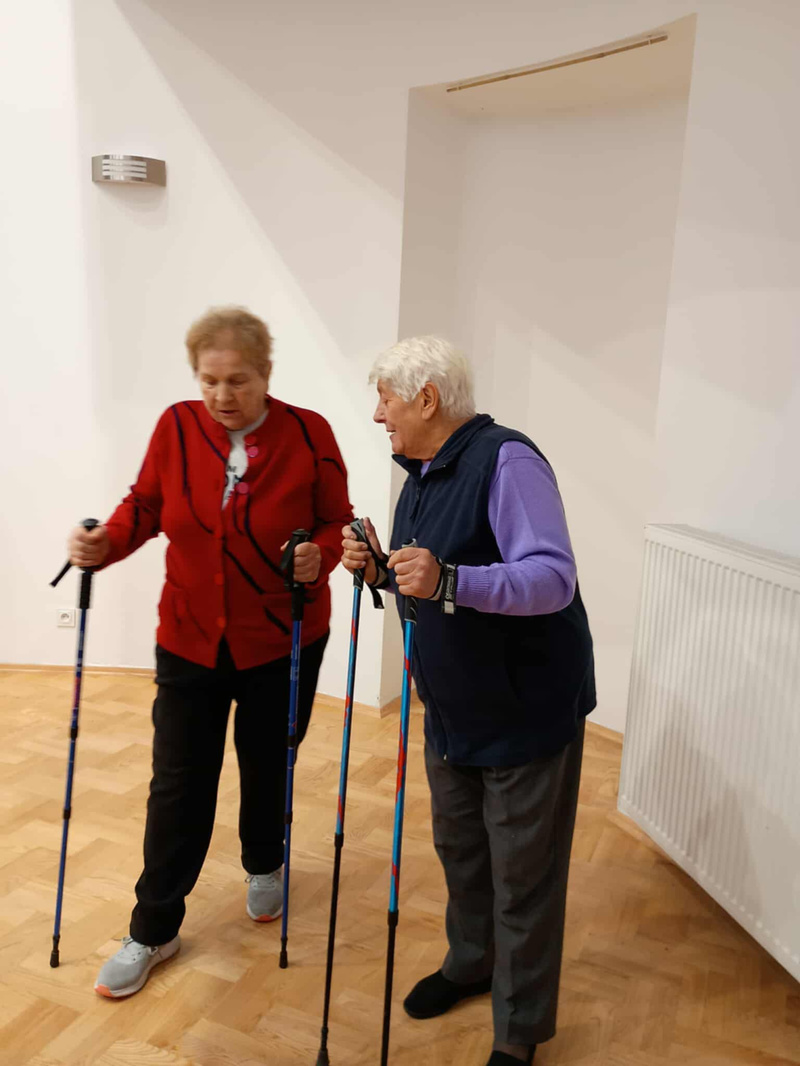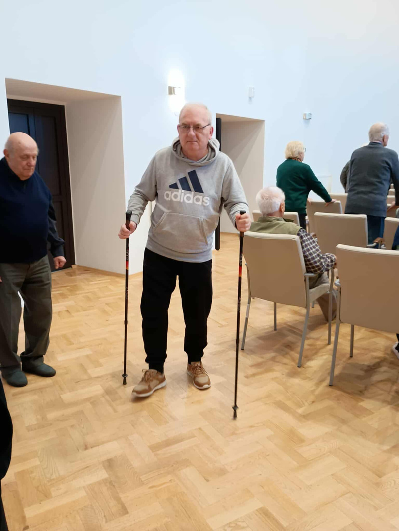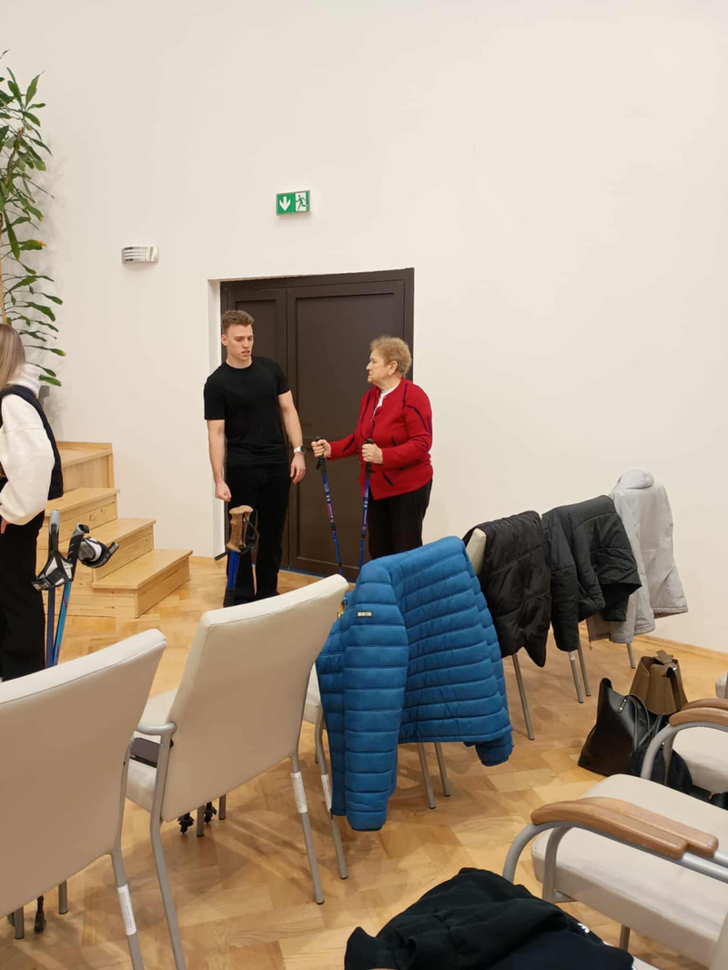 Podczas spotkania przyszli fizjoterapeuci prowadzili zajęcia edukacyjne oraz praktyczne warsztaty, ucząc seniorów m.in. techniki chodzenia z kijkami nordic walking – jednej z najbezpieczniejszych i najskuteczniejszych form aktywności fizycznej dla osób w wieku senioralnym.