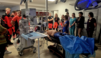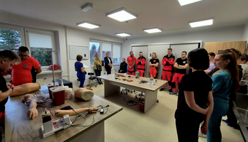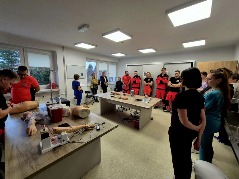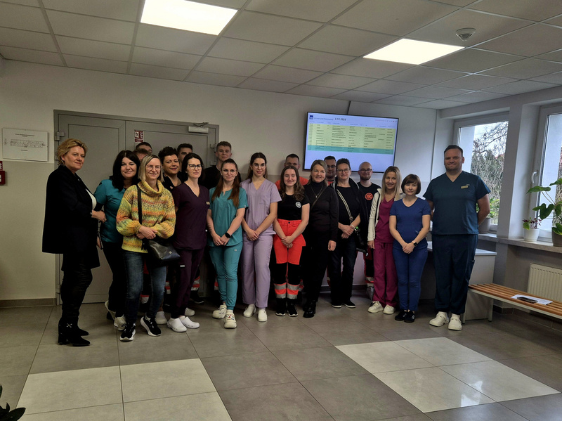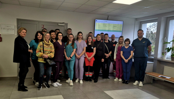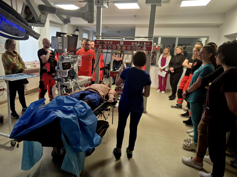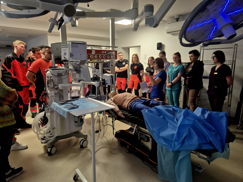 W dniu 13.12.2025 r. studenci Studenckiego Koła Symulacji Medycznej (SKSM) Instytutu Medycznego Uczelni Państwowej im. Jana Grodka w Sanoku, wraz z opiekunami, w ramach działalności Koła wzięli udział w warsztatach zorganizowanych przez dr n. o zdr. Anetę Lesiak oraz Koordynator Centrum Symulacji Medycznej ds. Pielęgniarstwa, dr n. o zdr. Izabelę Sałacińską, Uniwersytetu Rzeszowskiego.