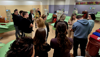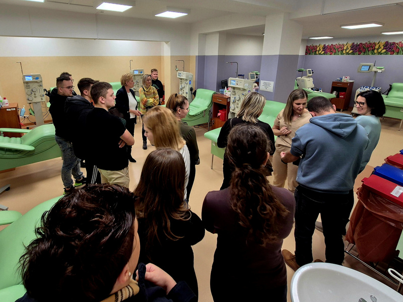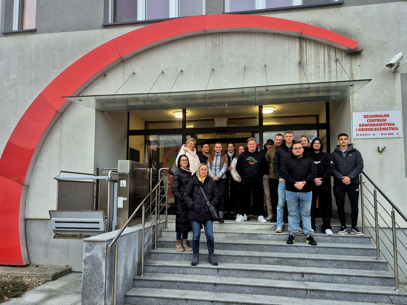 Następnie studenci wraz z opiekunami udali się do Regionalnego Centrum Krwiodawstwa i Krwiolecznictwa w Rzeszowie, gdzie mieli możliwość zapoznania się z celami, zadaniami oraz obszarem działalności RCKiK. Podczas wizyty w RCKiK studenci mieli także okazję zapoznać się z procesami pobierania, preparowania oraz przechowywania krwi i jej składników.